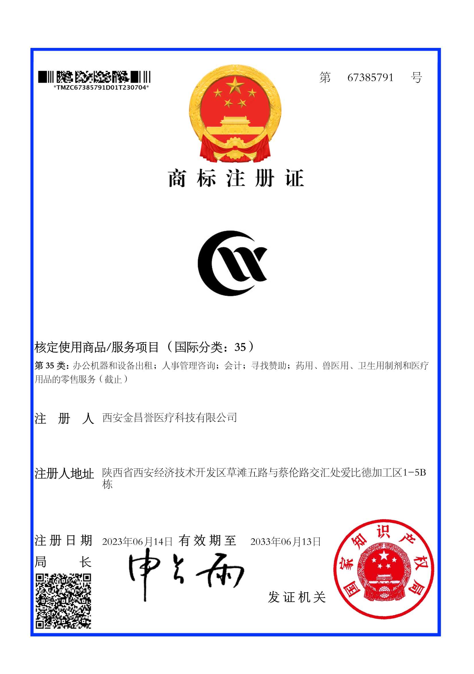 熱烈祝賀金昌譽(yù)醫(yī)療商標(biāo)注冊(cè)證下發(fā)